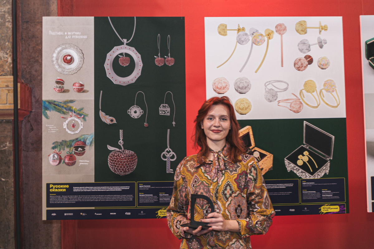 Второе место досталось выпускнице ИММиТ 2024 года Полине Любарской. Её работы впечатлили членов жюри своим мастерством и вниманием к деталям. Оригинальность выбранных Полиной образов продемонстрировала глубокое понимание традиций русского ювелирного искусства и современных тенденций дизайна.